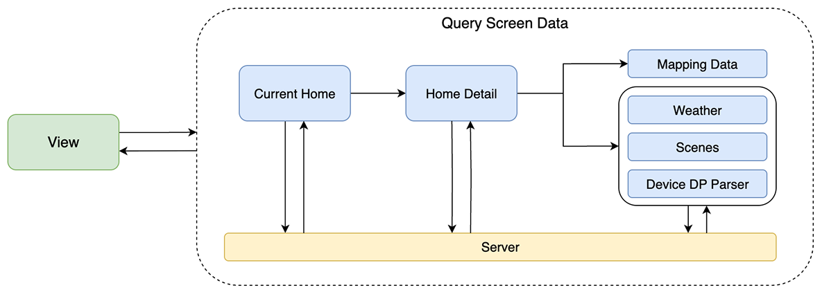 이후 서버 데이터를 수신하면 그 값을 로컬 저장소에 적절한 값으로 변환해 제공하며 유저 이벤트에 따른 값 저장 처리 등의 기능을 수행했다. 뷰모델에 많은 책임이 주어졌고 그만큼 뷰모델은 비대해지고 복잡한 상태였다. 메인화면의 뷰모델로써 사용자 이벤트로 인한 데이터 변경, IoT 기기 이벤트 처리까지 수행하기 위해선 구조 변경을 통해 모듈별 책임을 분리하고 기능을 간소화시킬 필요가 있었다.